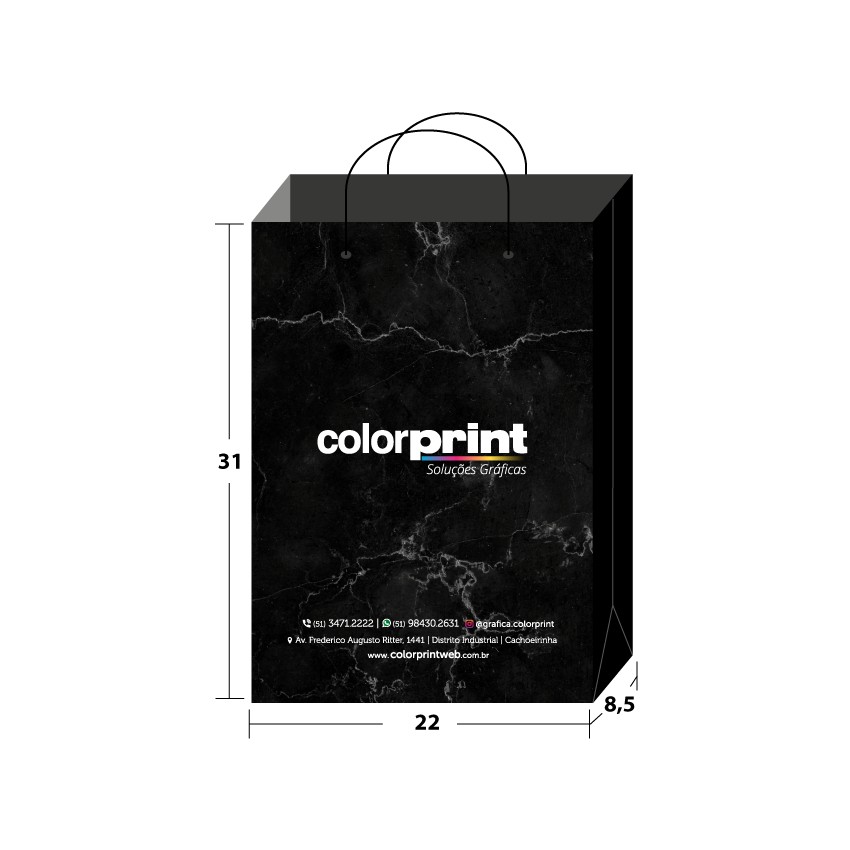 Papel / Material: Papel Duplex 250gr e alça de cordão