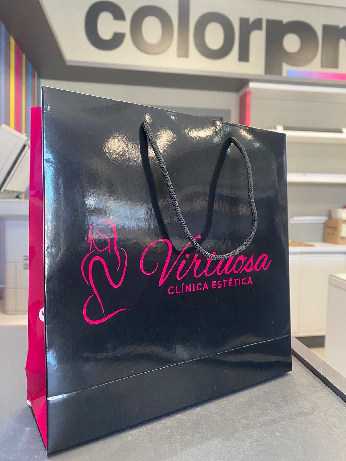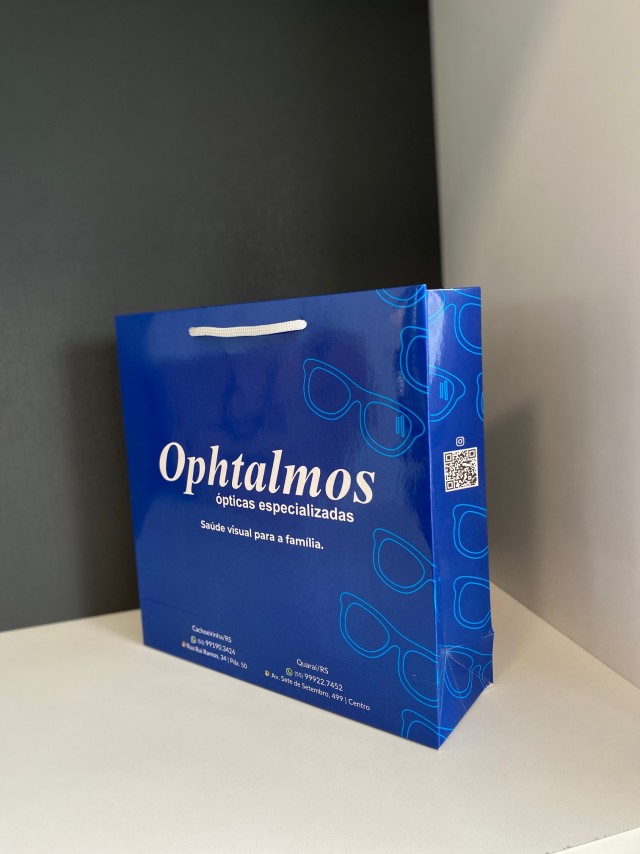 Papel / Material: Papel Duplex 250gr e alça com cordão